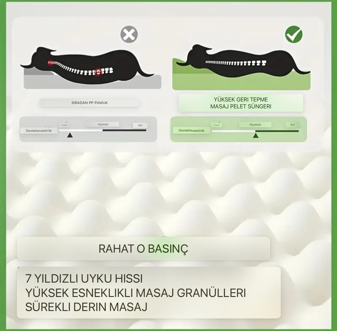 Küçük ırk köpekler için özel olarak tasarlanan 3D masaj süngerli köpek yatağı, omurga ve eklem sağlığını destekleyen ergonomik yapısı sayesinde evcil dostunuza konforlu ve sağlıklı bir dinlenme alanı sunar. Vücut basıncını dengeli şekilde dağıtan 3D masaj süngeri, rahat bir uyku deneyimi sağlarken uzun süreli kullanımlarda dahi formunu korur. Omurga destekli iç yapısı, özellikle hassas eklem yapısına sahip köpekler için ideal bir destek oluşturur. Çıkarılabilir ve fermuarlı kılıfı sayesinde kolayca temizlenebilir ve hijyenik kullanım imkânı sunar. Dayanıklı malzeme yapısı ile uzun ömürlü kullanım sağlayan bu köpek yatağı, iç mekân kullanımına uygun tasarımıyla evinizin her alanında güvenle kullanılabilir.