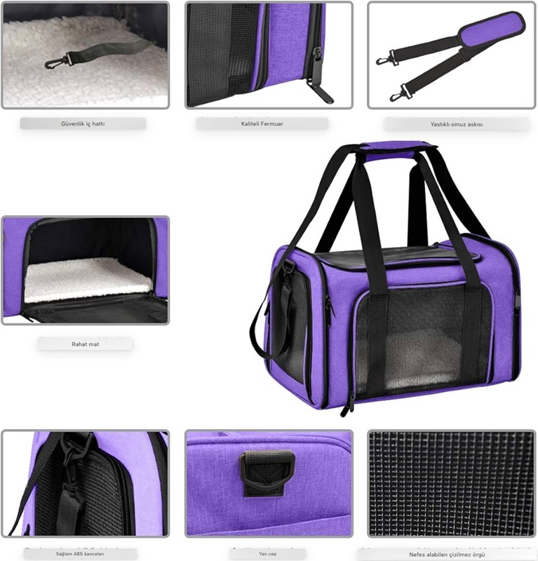 Konforlu, Güvenli ve Çok Amaçlı Kedi ve küçük ırk köpekleriniz için özel olarak tasarlanan fileli evcil hayvan taşıma çantası, seyahatlerde maksimum konfor ve güvenlik sunar. Nefes alabilen file panelleri sayesinde dostunuz yolculuk boyunca ferah kalır ve dışarıyı rahatça izleyebilir. Dayanıklı kumaş yapısı ve sağlam fermuar sistemi ile uzun ömürlü kullanım sağlar. İç kısmında yer alan yumuşak ve çıkarılabilir mat, evcil hayvanınızın rahat etmesi için idealdir. Ayrıca iç emniyet tasması sayesinde ani hareketlerde ekstra güvenlik sunar. Omuz askısı ve elde taşıma sapları ile elde, omuzda, bisiklette ve uçak/otobüs koltuğu altında rahatlıkla kullanılabilir. Yan cepleri sayesinde mama, ödül veya aksesuarlar için ekstra alan sağlar.