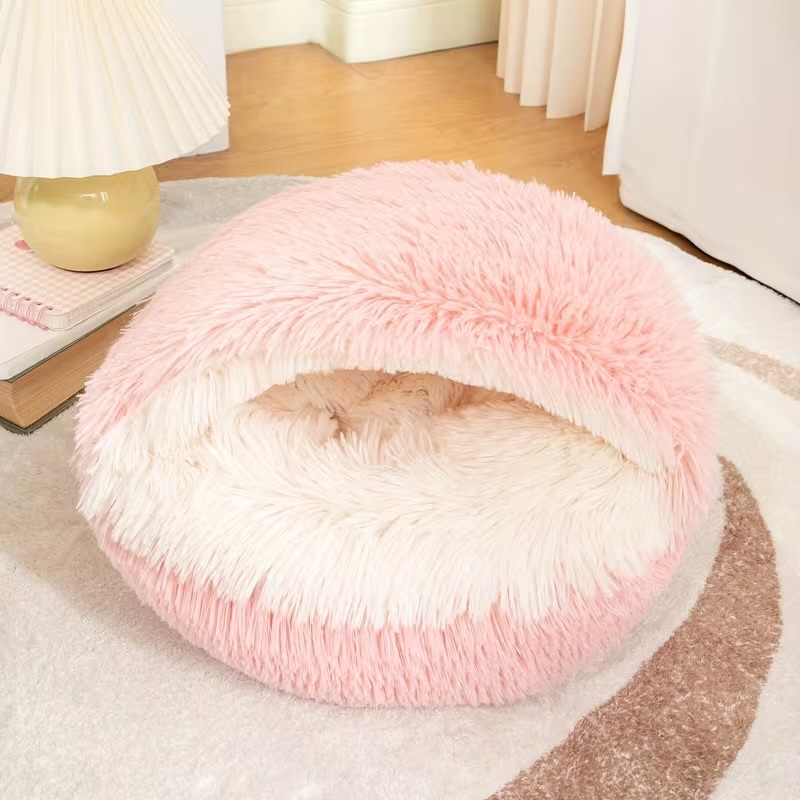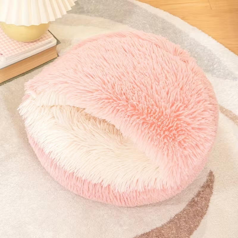 Yumuşacık peluş dokusuyla tasarlanan bu kapalı ev tipi kedi & köpek yatağı, patili dostunuza güvenli ve sıcacık bir dinlenme alanı sunar. Mağara formu sayesinde dış etkenlerden izole eder, özellikle soğuk havalarda maksimum konfor sağlar. İç kısmındaki dolgulu ve kabarık zemin, eklem ve kasları destekleyerek rahat bir uyku deneyimi sunar. Şık pembe rengiyle ev dekorasyonuna kolayca uyum sağlar. Küçük ırk köpekler ve tüm kediler için idealdir.