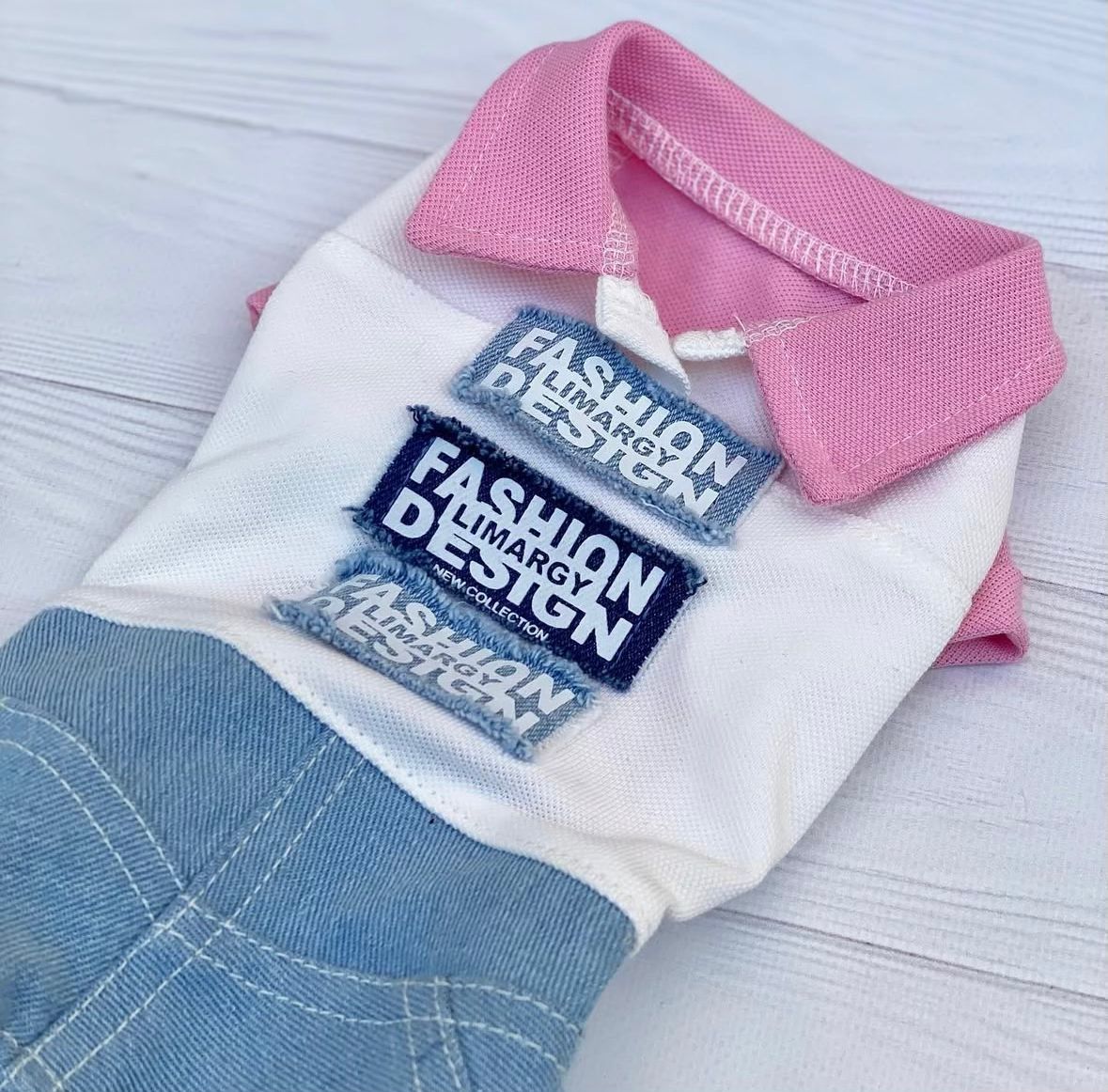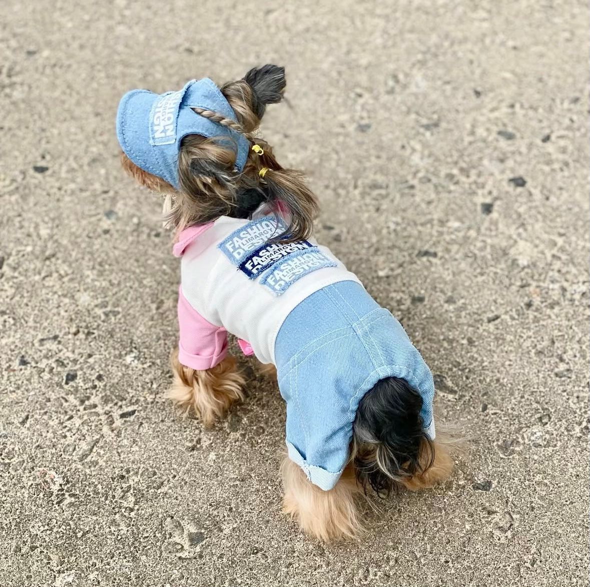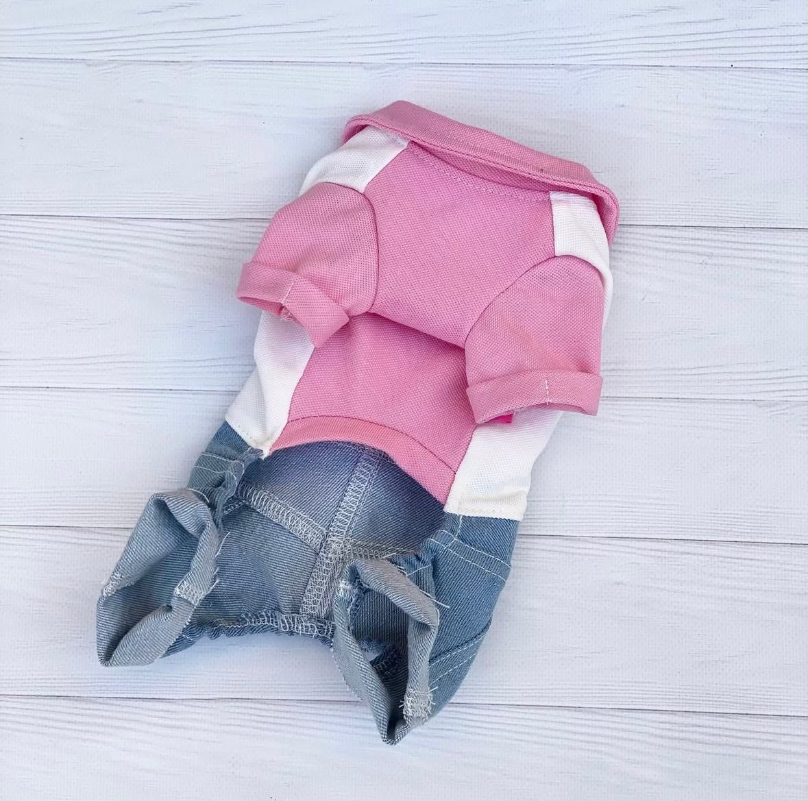 Polo Yaka Detaylı Kot Tasarımlı Köpek Tulumu