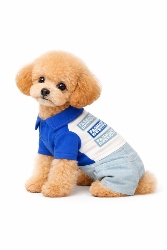 Polo Yaka Detaylı Kot Tasarımlı Köpek Tulumu