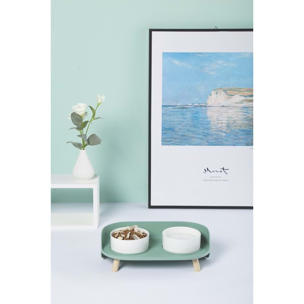 Yükseltilmiş yapısıyla evcil hayvanınızın yemek yerken boyun ve eklem zorlanmasını azaltan bu çiftli seramik mama ve su kabı, ergonomik bir beslenme deneyimi sunar. Mikrodalga ve bulaşık makinesinde kullanılabilen sağlam seramik yapısıyla hem hijyenik hem de uzun ömürlüdür. Konserve mamalar için ideal ölçüye sahiptir ve şık tasarımıyla her ortama uyum sağlar.